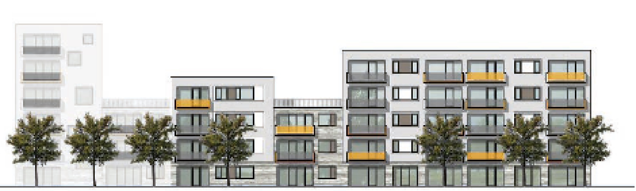 Vier- bis fünfgeschossige Mehrfamilienhäuser fungieren